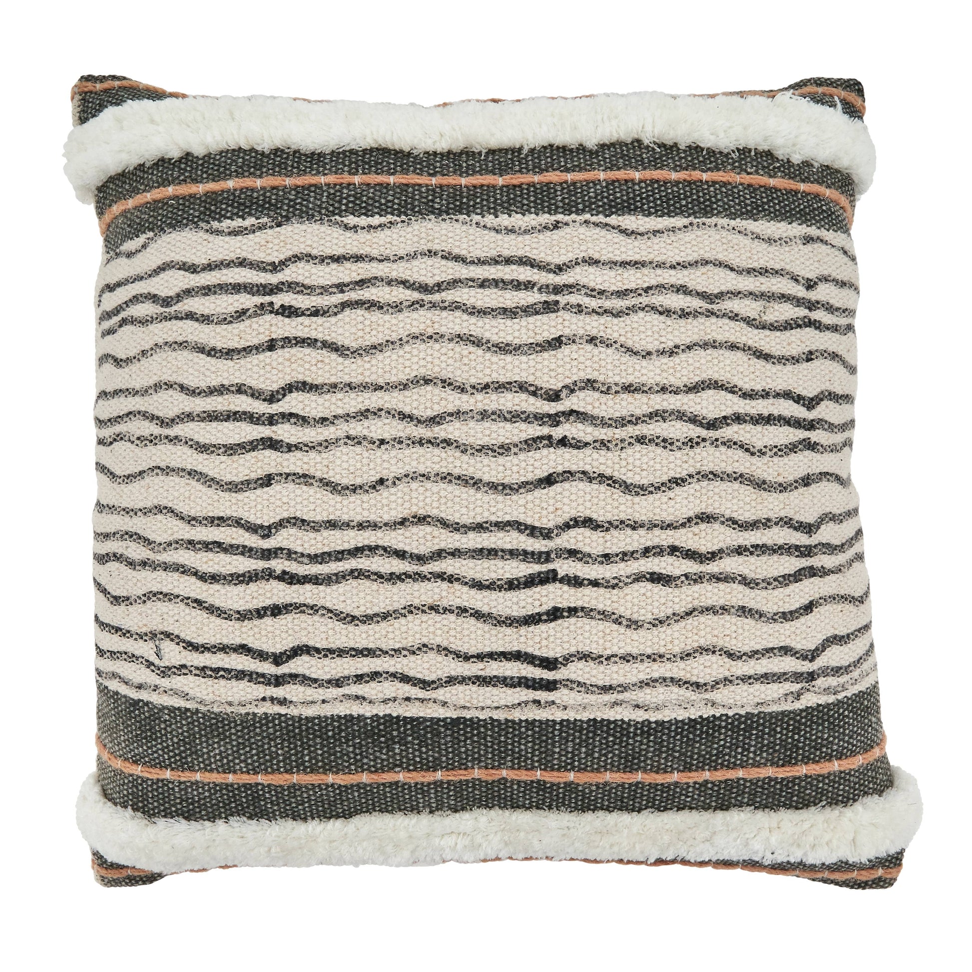 Bring warmth and texture to your décor with this lovely Stripe Printed and Embroidered Throw Pillow. It features natural tones and colors, which makes it easy to fit within any décor. Pair with solid colors to make it pop even more.
