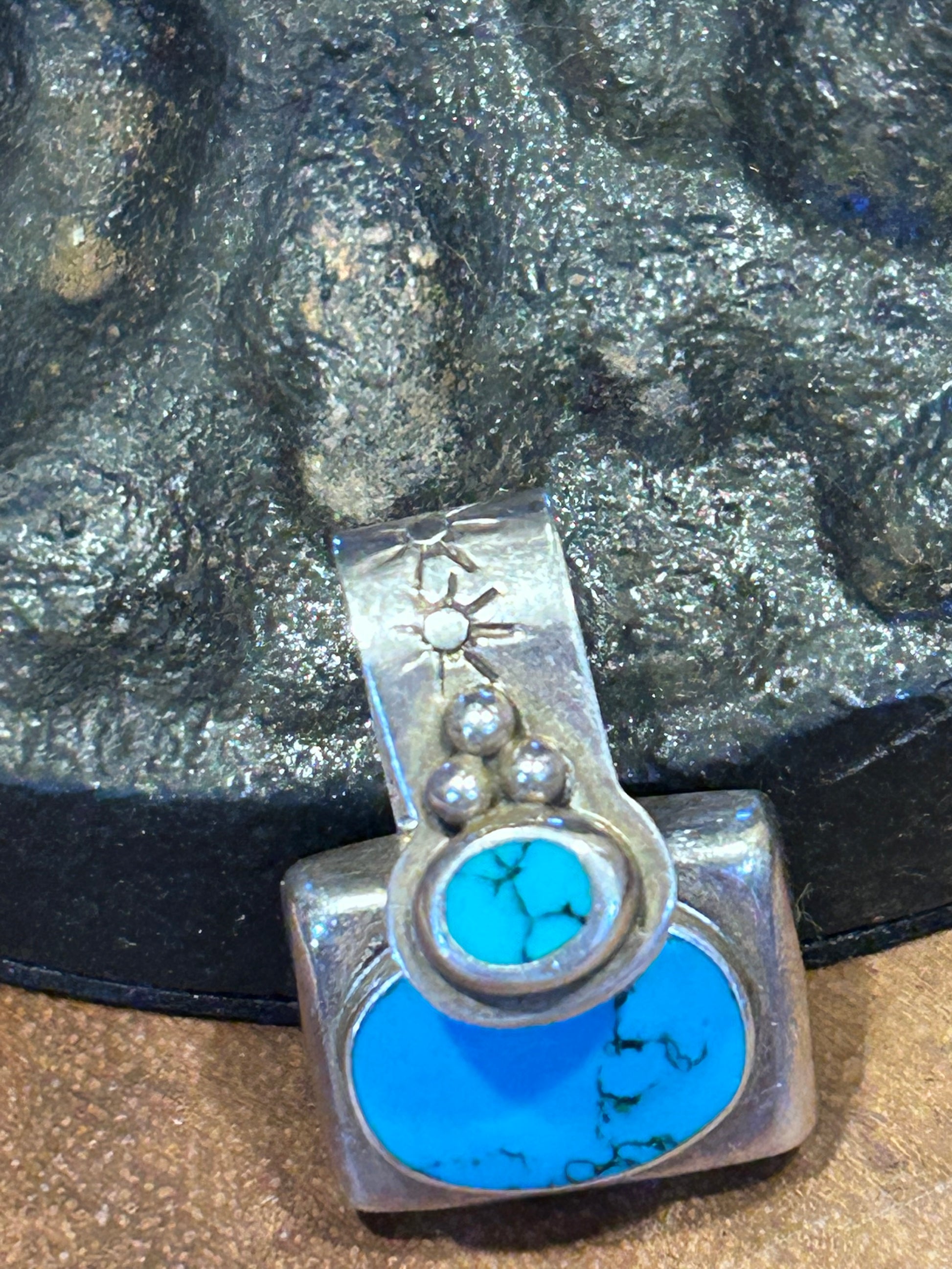This authentic vintage pendant showcases genuine turquoise set in sterling silver, hallmarked with Mexico's coveted 925 stamp. The rich blue-green stone captures the spirit of the Southwest, while the adjustable bale allows you to wear it on various chain widths. A timeless piece that brings rustic charm and natural beauty to any collection, perfect for those who appreciate handcrafted heritage jewelry with character and soul.